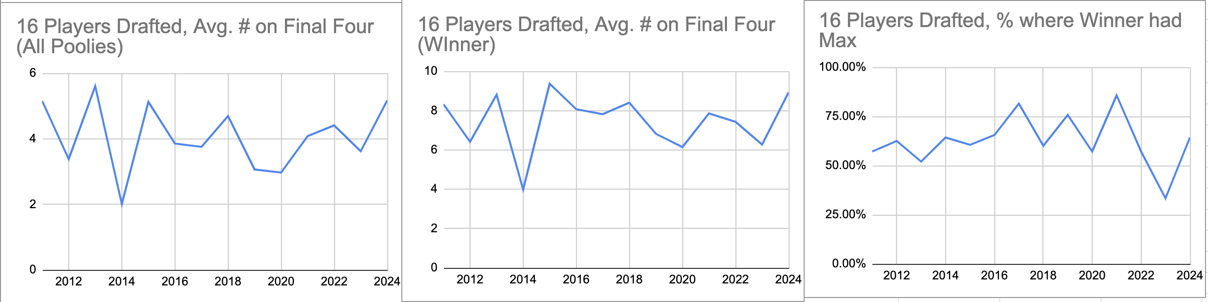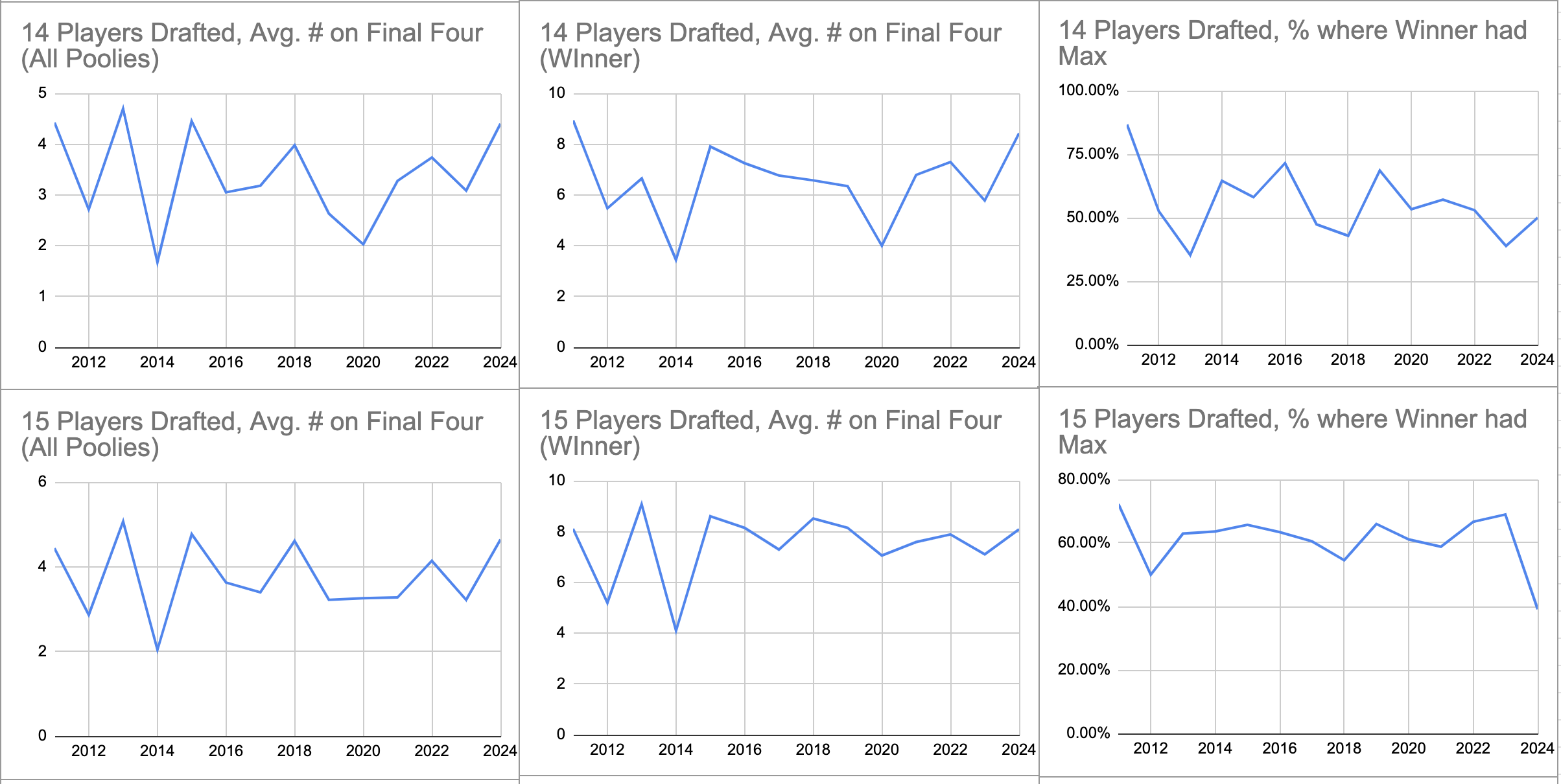 Figure 3. Per-Number-of-Players-Drafted charts comparing pools of similar size.